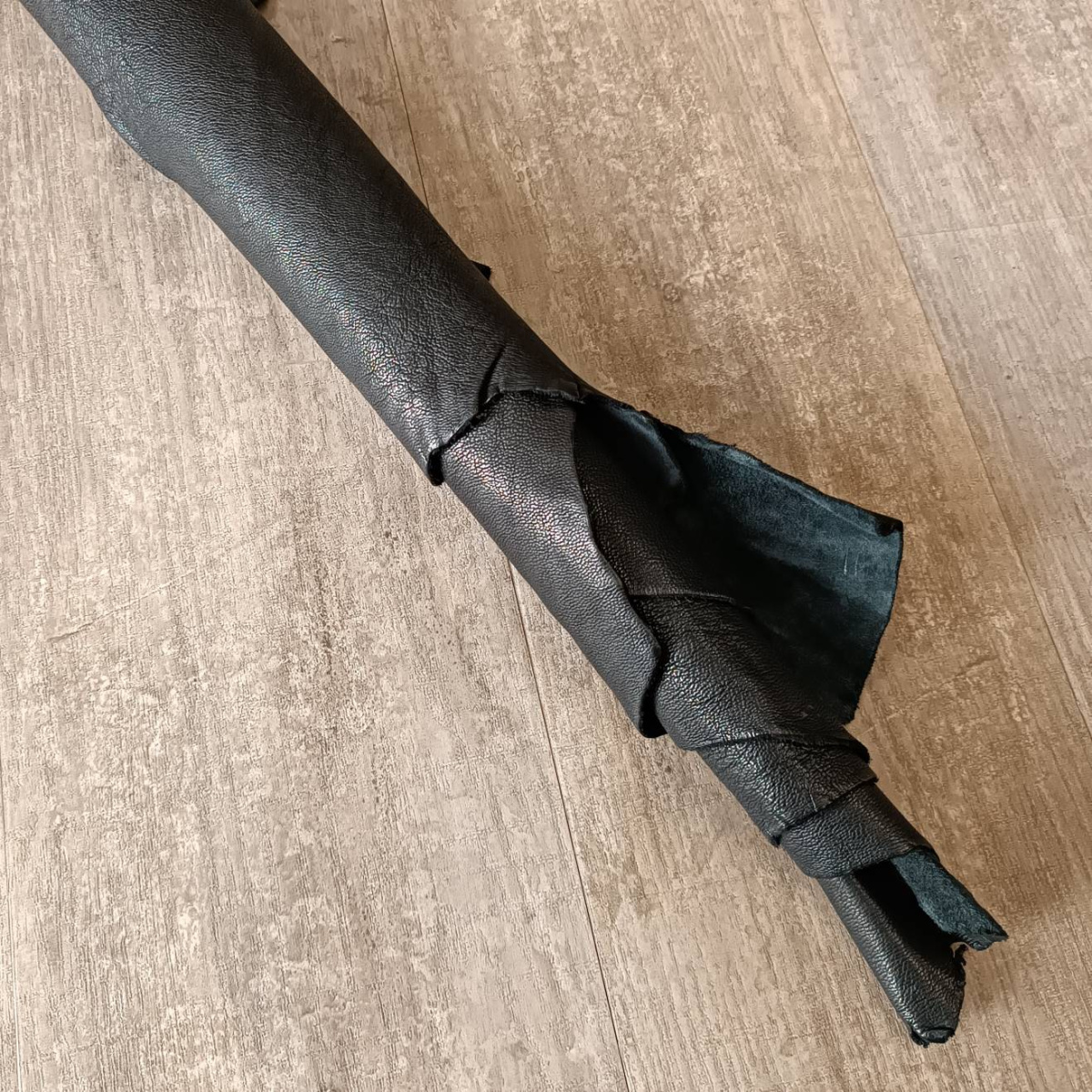Кожа козы (МРС) растительного дубления галантерейной выделки. Толщина кожи 0.8-1,0 мм Лицо с финишным покрытием, фактурная гладкая поверхность. Бахтарма ровная, бархатистая. Цвет черный, однородный матовый.