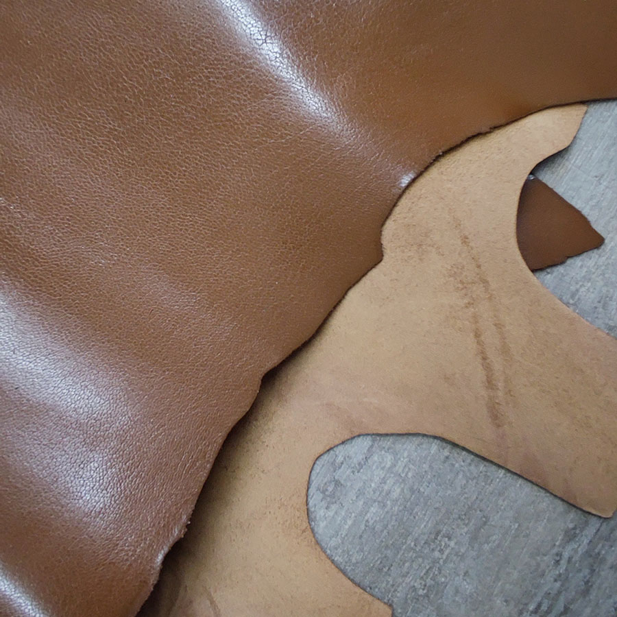 Кожа козы (шевро) растительного дубления галантерейной выделки. Толщина кожи 1,0-1,2 мм. Лицо с финишным покрытием, фактурная гладкая поверхность. Бахтарма ровная, бархатистая. Цвет однородный глянцевый.
