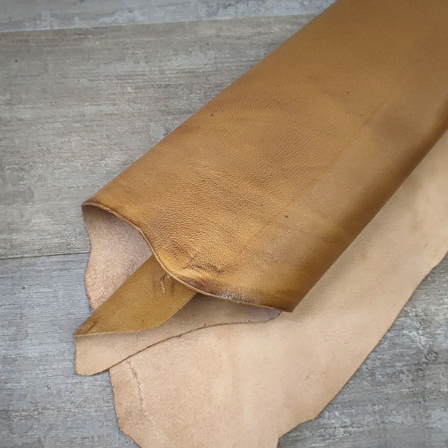Кожа козы (МРС) комбинированного дубления галантерейной выделки. Толщина кожи 0,9-1,2 мм, в среднем - 1,0 мм. Лицо гладкое, фактурное, матовый блеск. Бахтарма ровная, бархатистая.
