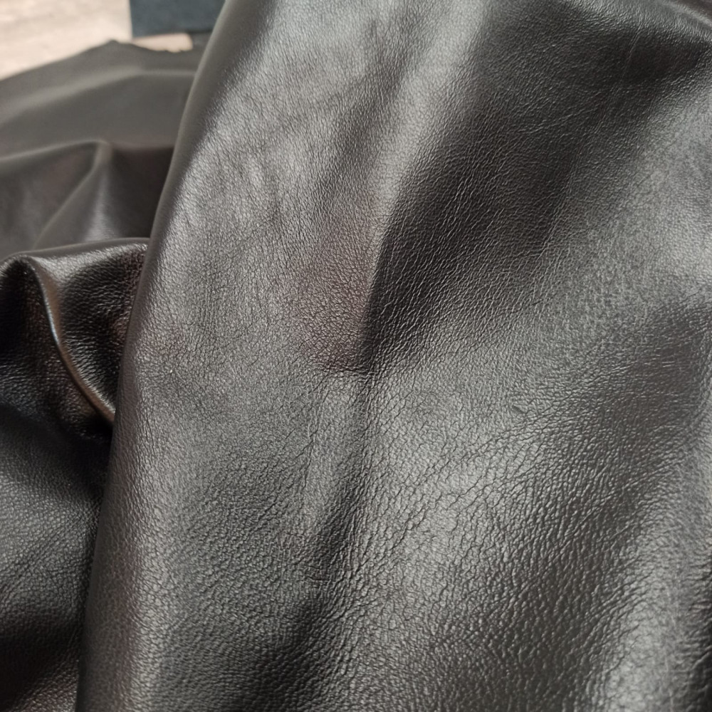 Кожа Овчина (МРС) комбинированного дубления. Толщина кожи 0,5-0,7 мм. Лицо с финишным покрытием, гладкая поверхность. Бахтарма ровная, бархатистая.