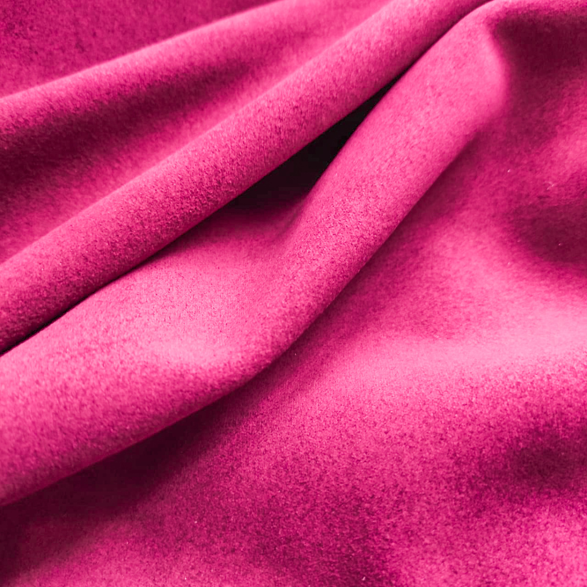 Кожа спилок с однородным ровным ворсом - велюр. Цвет фуксия (очень яркий чистый цвет), толщина 1,2-1,4, мягкий, эластичный, разбит в барабане. Лицо чистого ровного цвета, бахтарма ровная. Отлично подойдет для пошива обуви, шляпок, сумок, клатчей, обложек, рюкзачков.