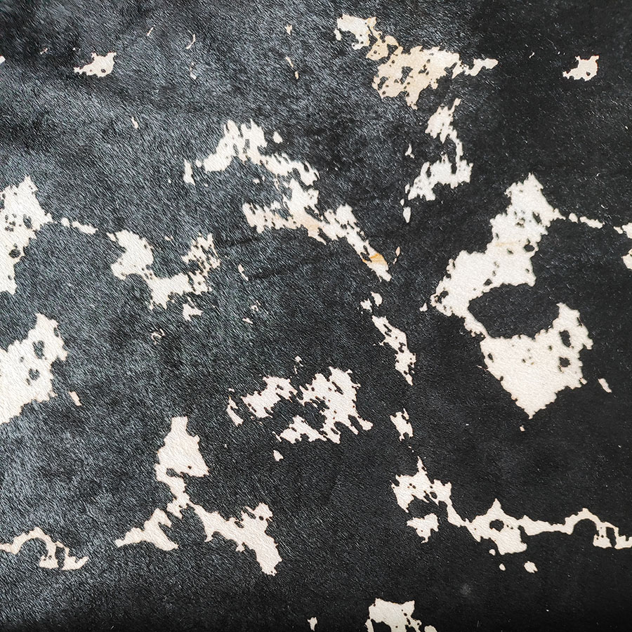 Натуральная кожа КРС с ворсом принт под корову белые крапины на черном фоне. Ворс гладкий, очень низкий, под "бархат". Мездра ровная, гладкая.