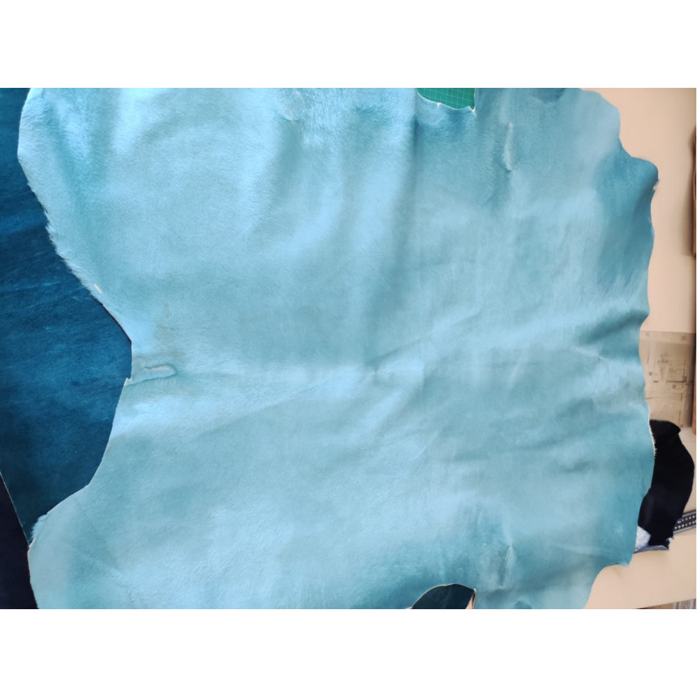 Кожа продается шкурами - в списке опций указаны размеры конкретных шкур в дециметрах, которые имеются в наличии.