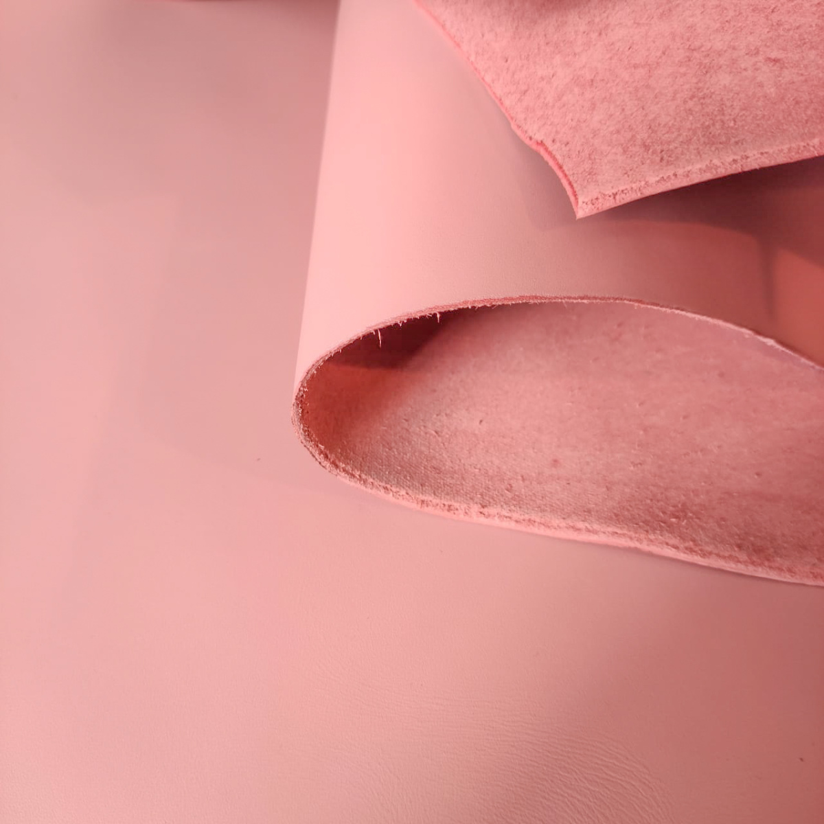 Лицо гладкое с пылевидным покрытием. Покрытие гладкое, имеет сатиновый блеск. Кожа плотная, довольно пластичная.