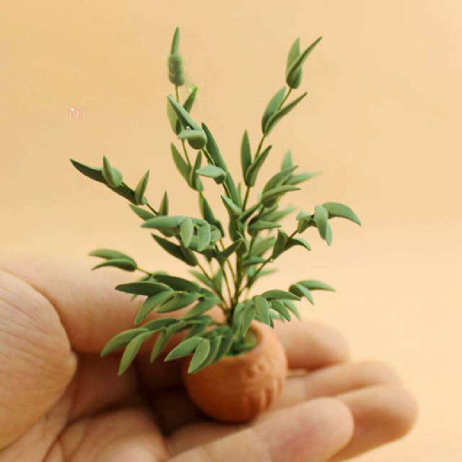 Бамбук в керамическом горшке для кукольного дома