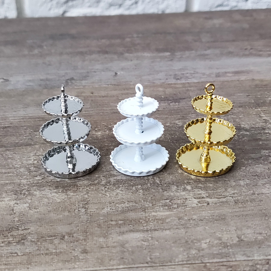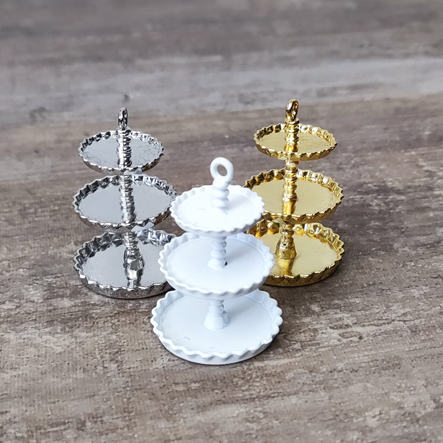 Миниатюрное металлическое трехуровневое блюдо для кукольного десерта. Вы можете положить туда мини фрукты, пирожные, конфеты и другие сладости для кукол. Такое блюдо станет нарядным дополнением в интерьере кукольного домика