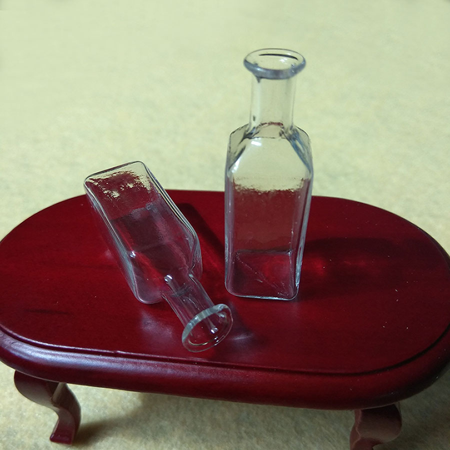 Миниатюрные прозрачные бутылочки подойдут для оформления кукольного домика, румбокса или витрины кукольного магазина масштабом 1:12 (для кукол размером около 12 см).