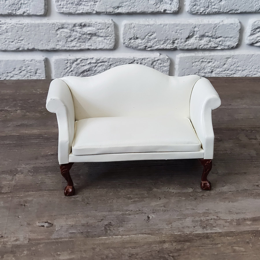 Материал обивки - искусственная кожа, цвет белый. Ножки деревянные, орех