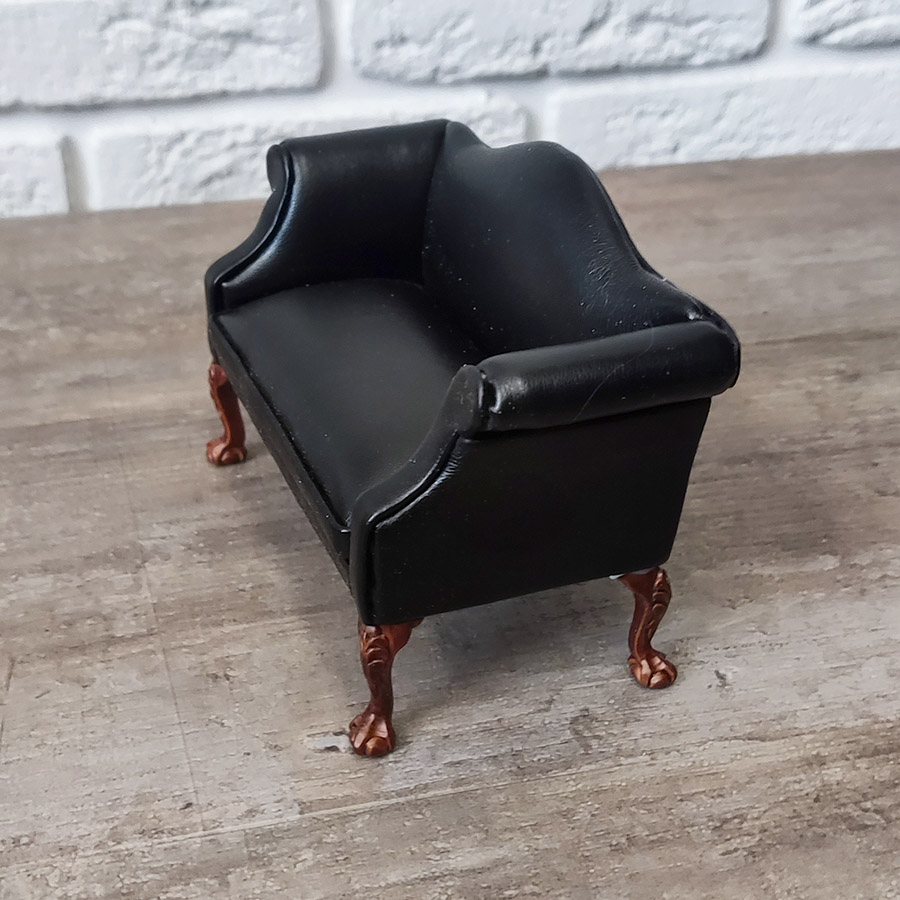 Диван для кукол Классика черный Миниатюра 1:12