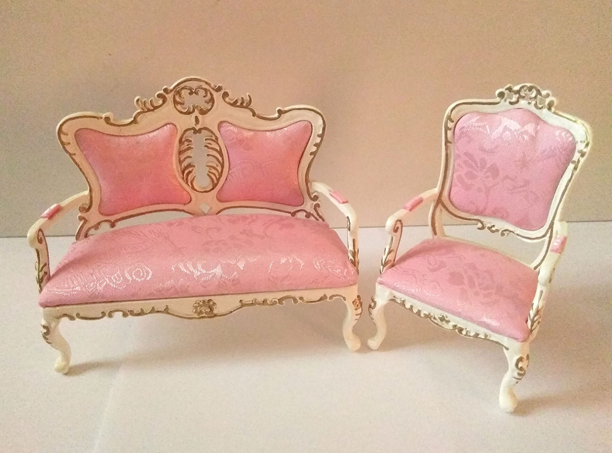 Диван и кресло для кукол Золото на белом Миниатюра 1:12
