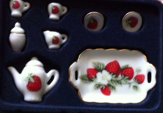 Фарфоровый чайный сервиз для кукол Клубнички на две персоны