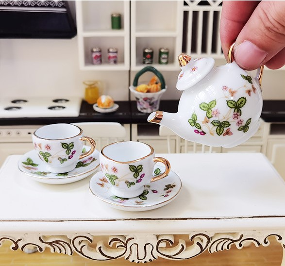 Фарфоровый чайный сервиз для кукол Цветы Масштаб 1:6