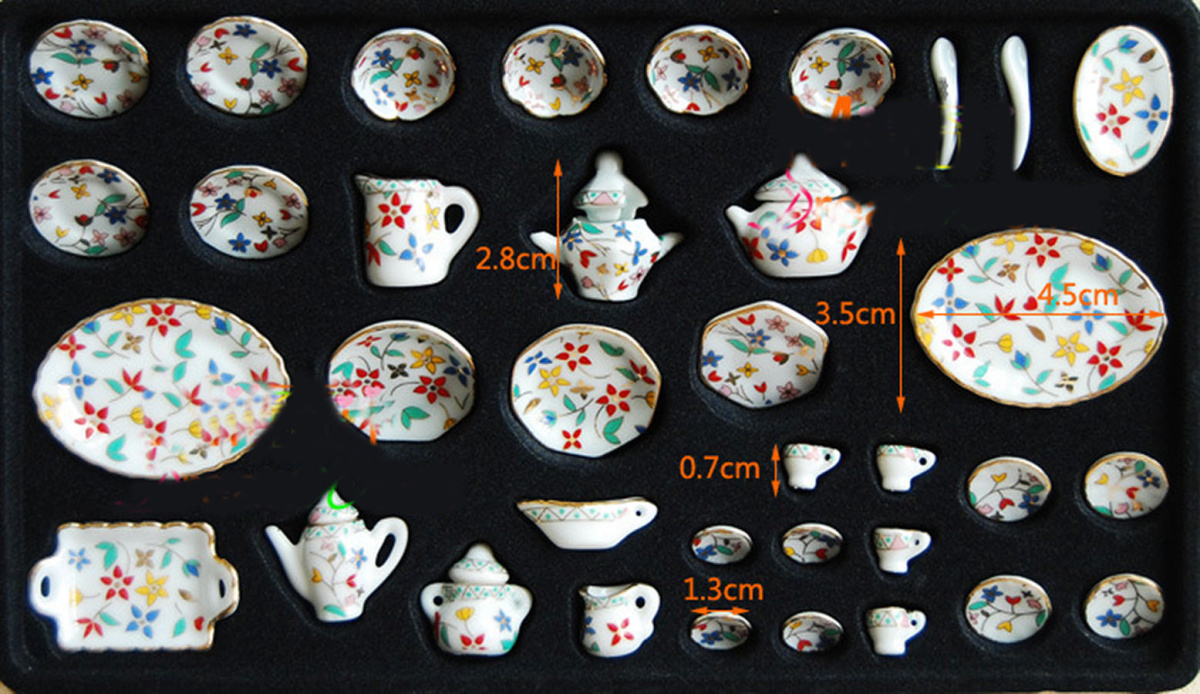 Изысканный сервиз для кукол с позолотой и с цветочным орнаментом - 36 предметов