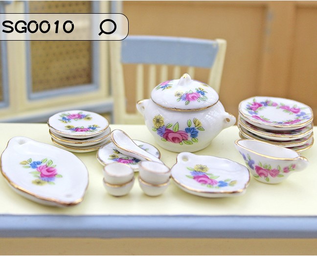 Фарфоровый столовый сервиз для кукол с розами и васильками 17 предметов   - фото товара