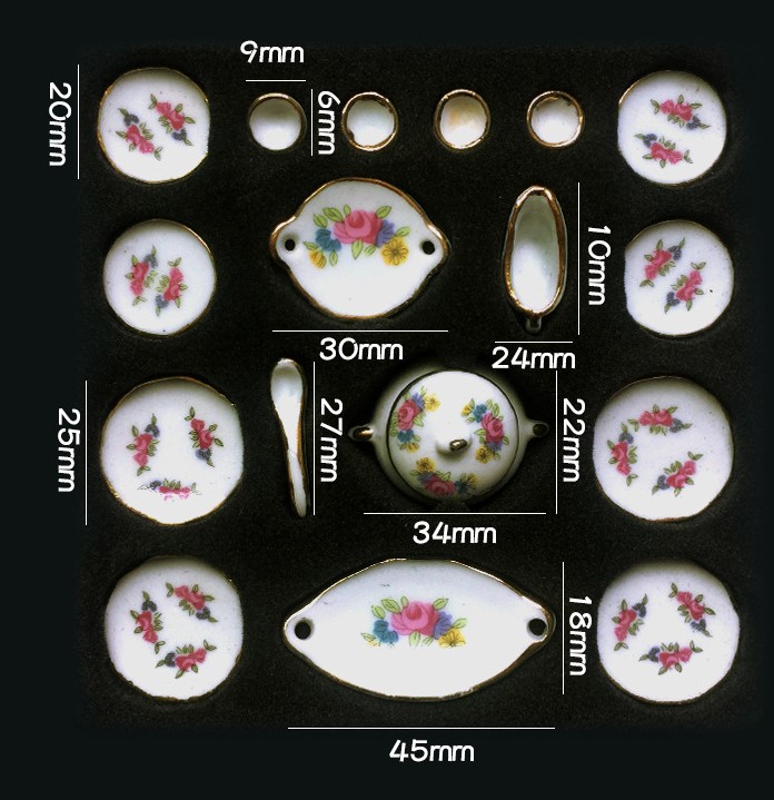 Фарфоровый столовый сервиз для кукол с Синим орнаментом 17 предметов