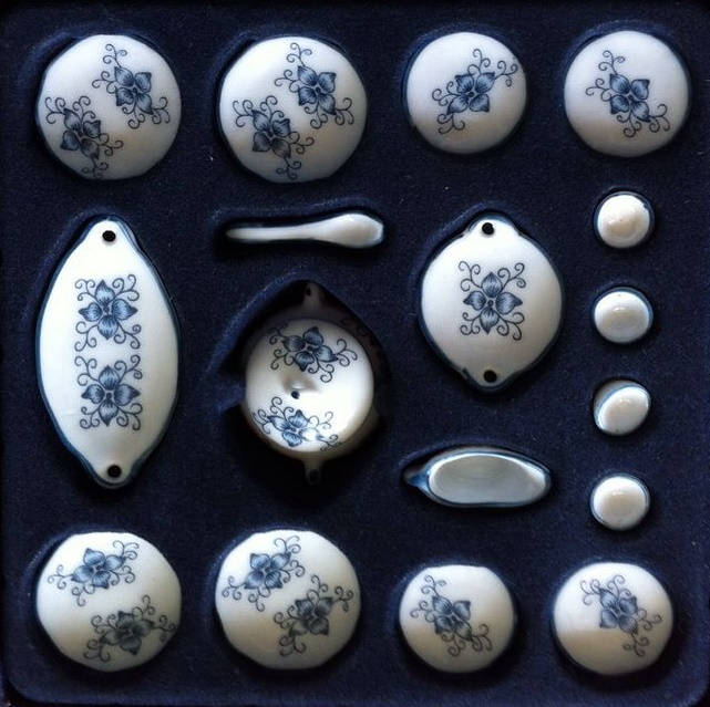 Фарфоровый столовый сервиз для кукол с Синим орнаментом 17 предметов   - фото товара
