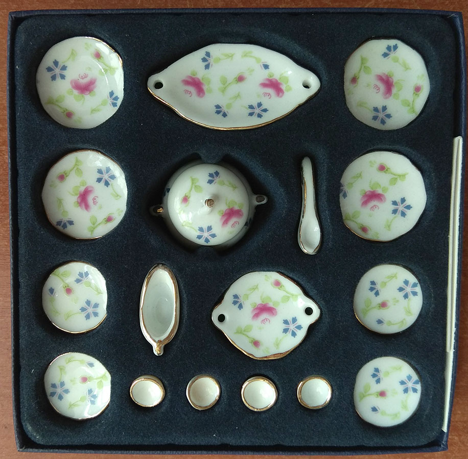 Миниатюрный столовый сервиз для кукол на 4 персоны c цветочным орнаментом - для румбоксов и кукольных домиков