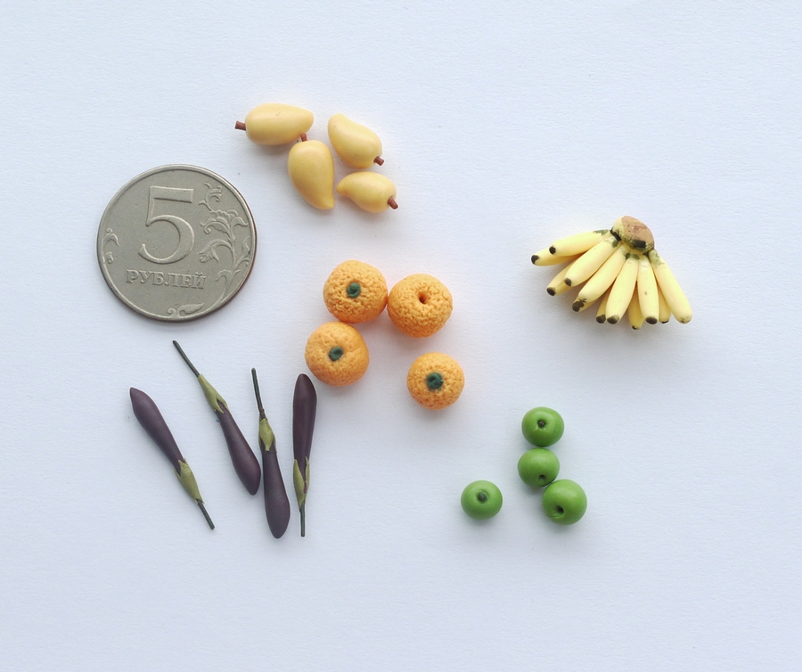 Миниатюрные фрукты из пластики, масштаб 1:12
