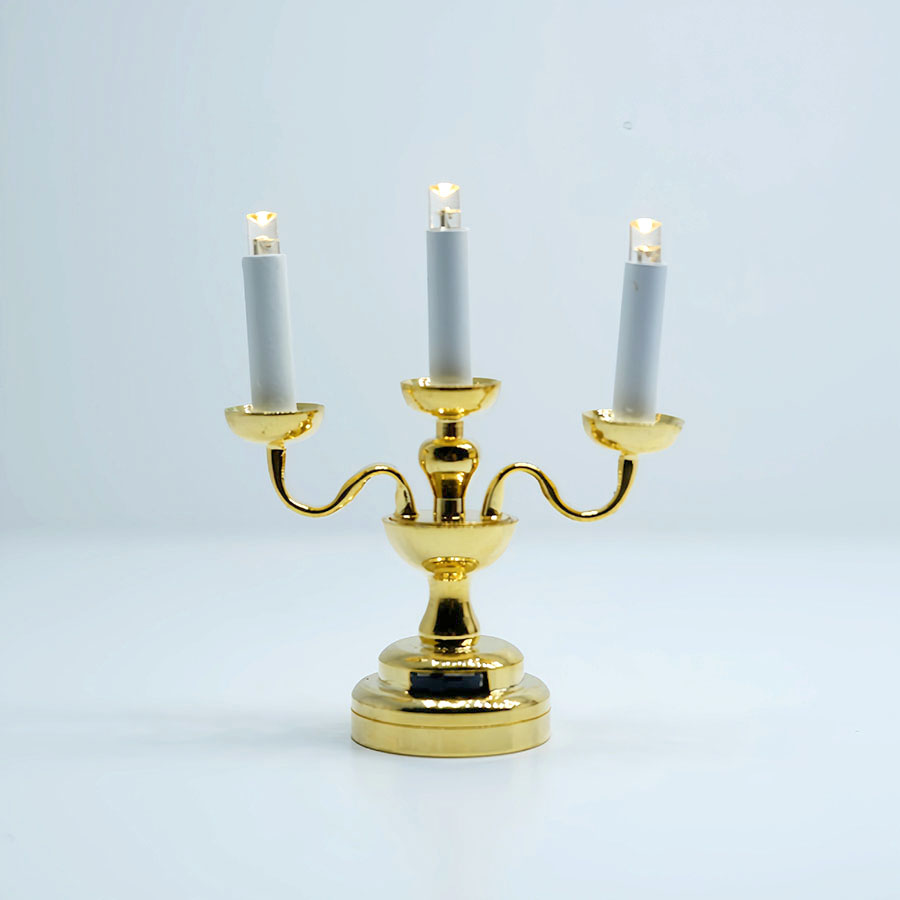 Канделябр на 3 свечи/лампочек LED. Миниатюрный светильник - на батарейках (хватает на 72 часа), батарейка входит в комплект, при необходимости ее можно заменить на новую, раскрутив основание светильника.