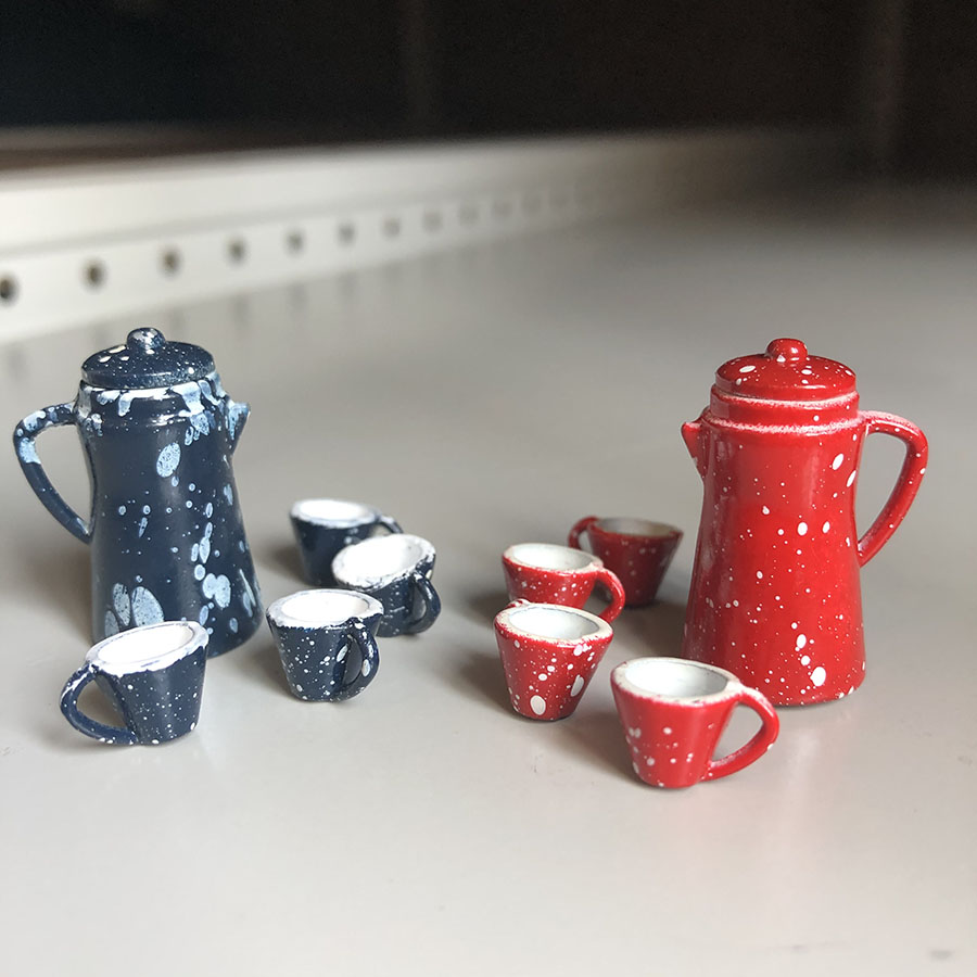 Миниатюрный керамический кофейник и 4 кофейные чашечки для куколок. С таким набором все готово к кофепитию в кукольном доме или румбоксе. Миниатюра Масштаб 1:12