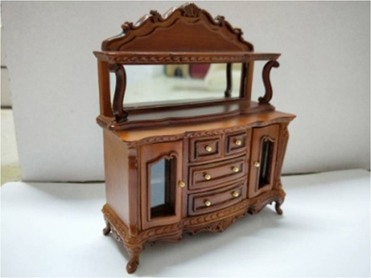 Комод для кукол с зеркалом и стеклянными дверками Орех Миниатюра 1:12   - фото товара