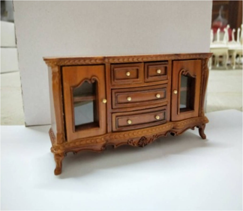Комод с резьбой и стеклянными дверками орех Миниатюра 1:12   - фото товара