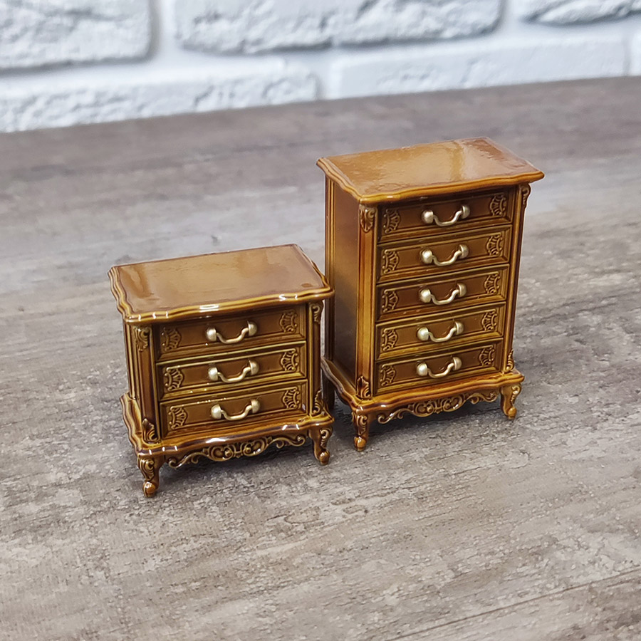 Оригинальный комод с резьбой для кукольного дома или румбокса.  Ящички выдвигаются.