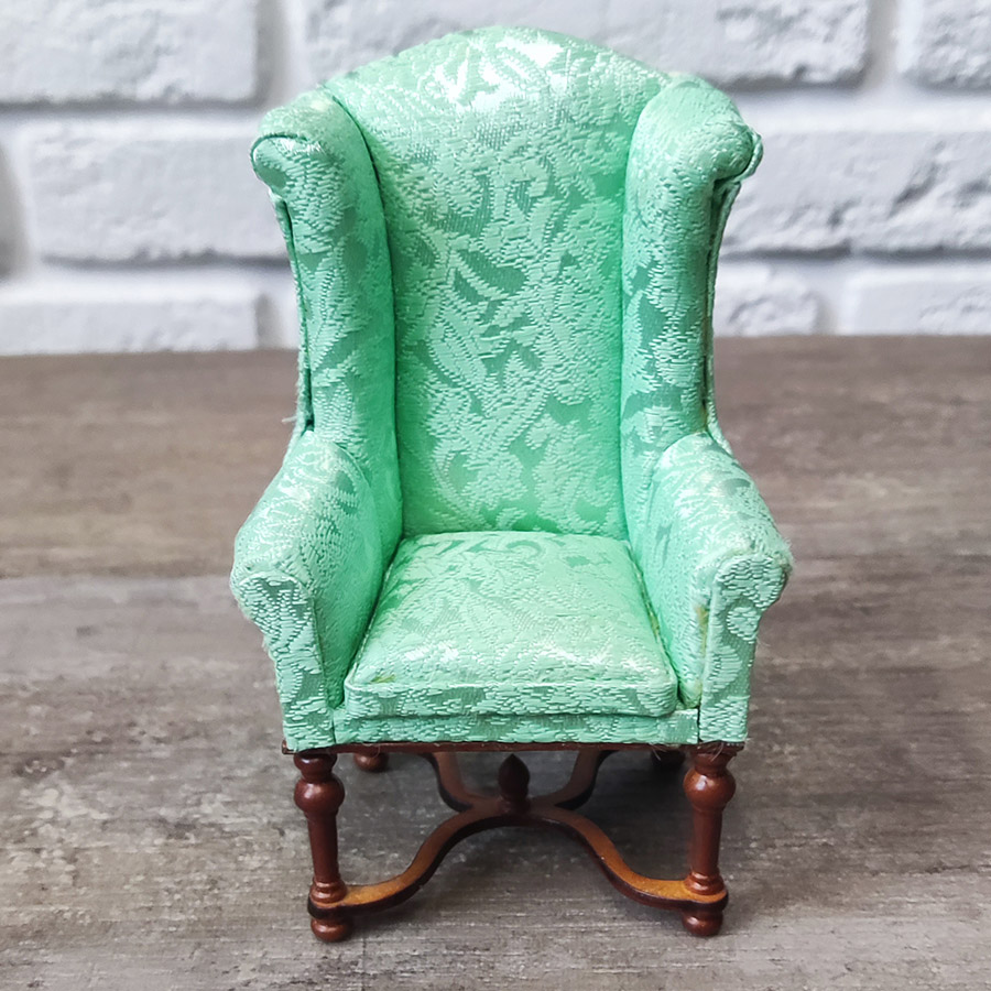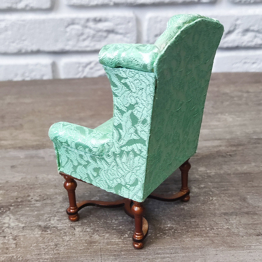 Кресло для кукол c с зеленой обивкой Орех