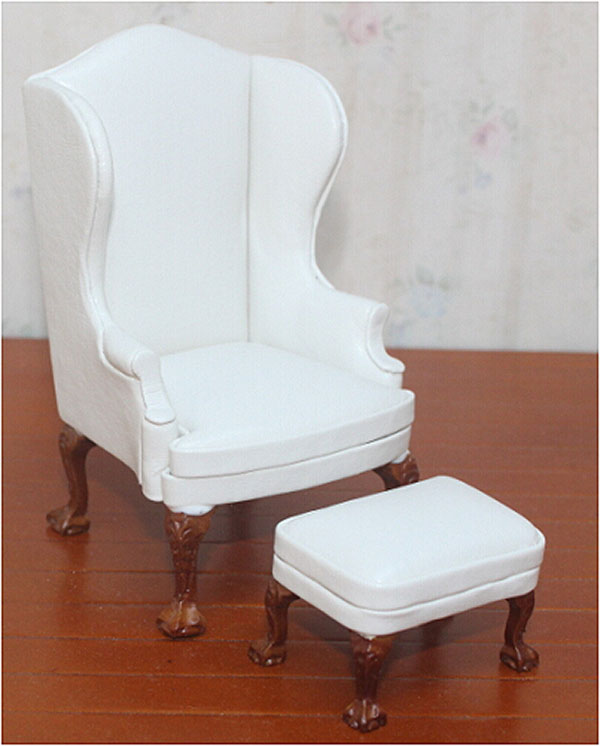 Кресло для кукол с пуфом Белое