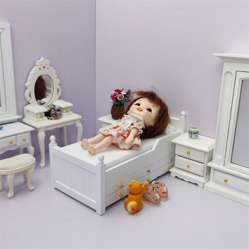 Кровать для кукол Белая с выдвижным ящиком