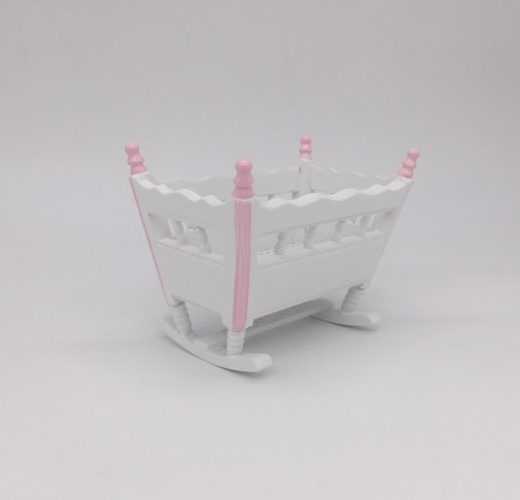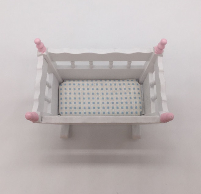 Миниатюрная кроватка-колыбелька для кукольных деток. Пригодится для интерьера детской комнаты в кукольном доме или румбоксе с масштабом 1:12 (для куколок около 12 см). В комплект входит матрасик
