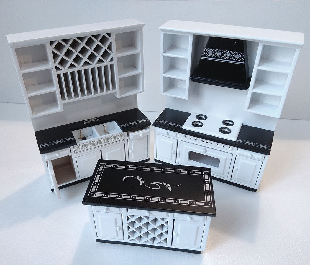Миниатюрный кухонный гарнитур для кукол состоит из трех модулей. Масштаб 1:12 для кукол около 12 см