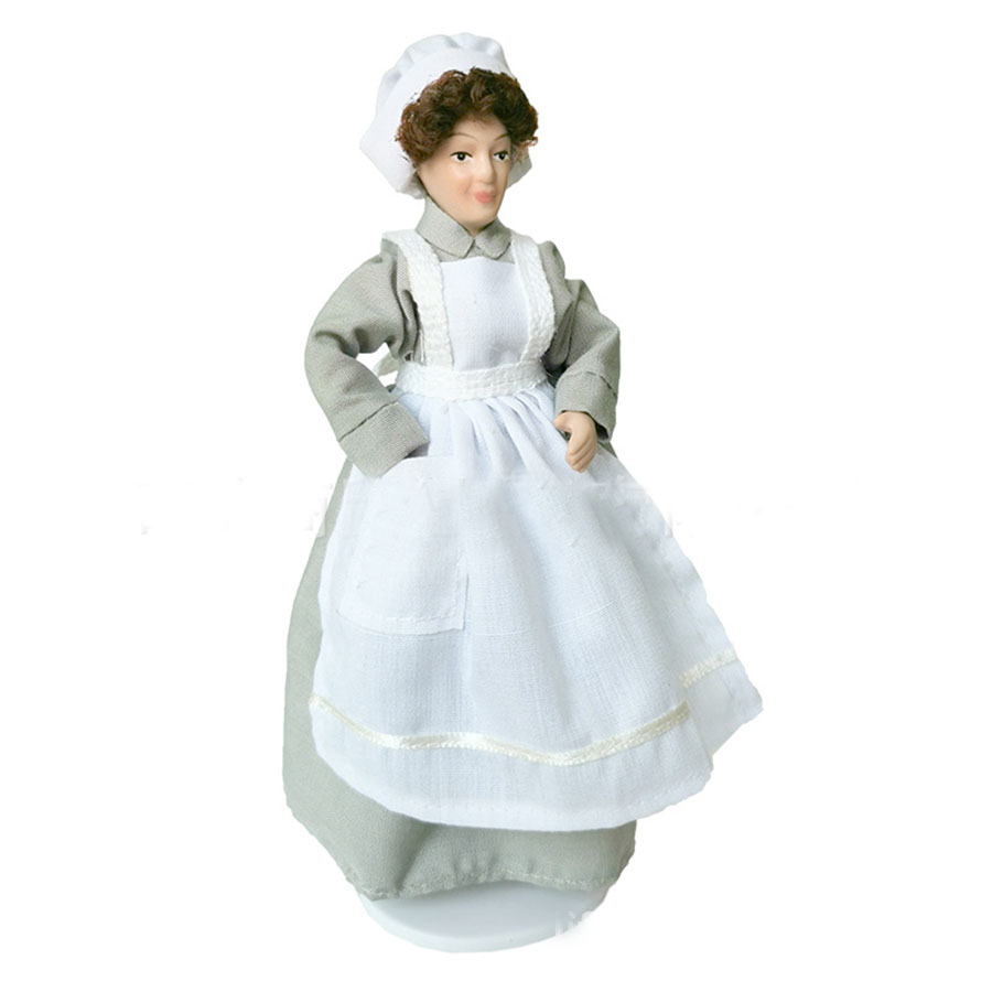 Миниатюрные куколки для домиков и румбоксов в масштабе 1:12. Бабушка в белом фартуке, с чепчиком. В зависимости от поставке оттенки, цвета изделия могут варьироваться