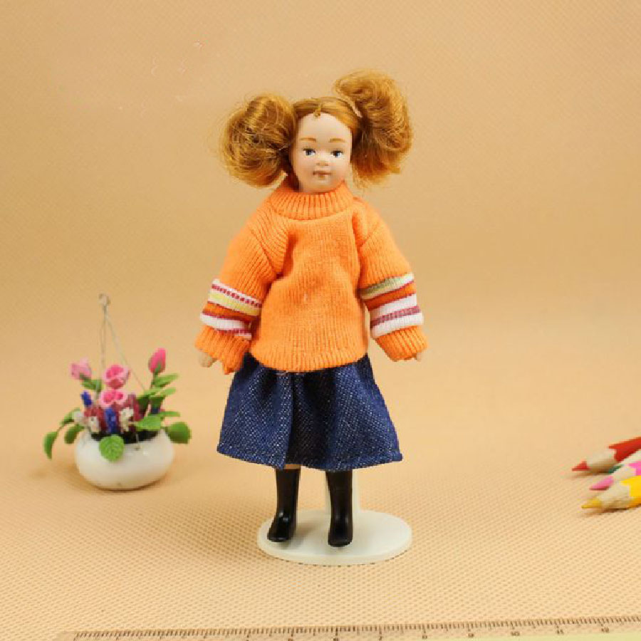 Кукла Девочка в оранжевом свитере Миниатюра 1:12   - фото товара