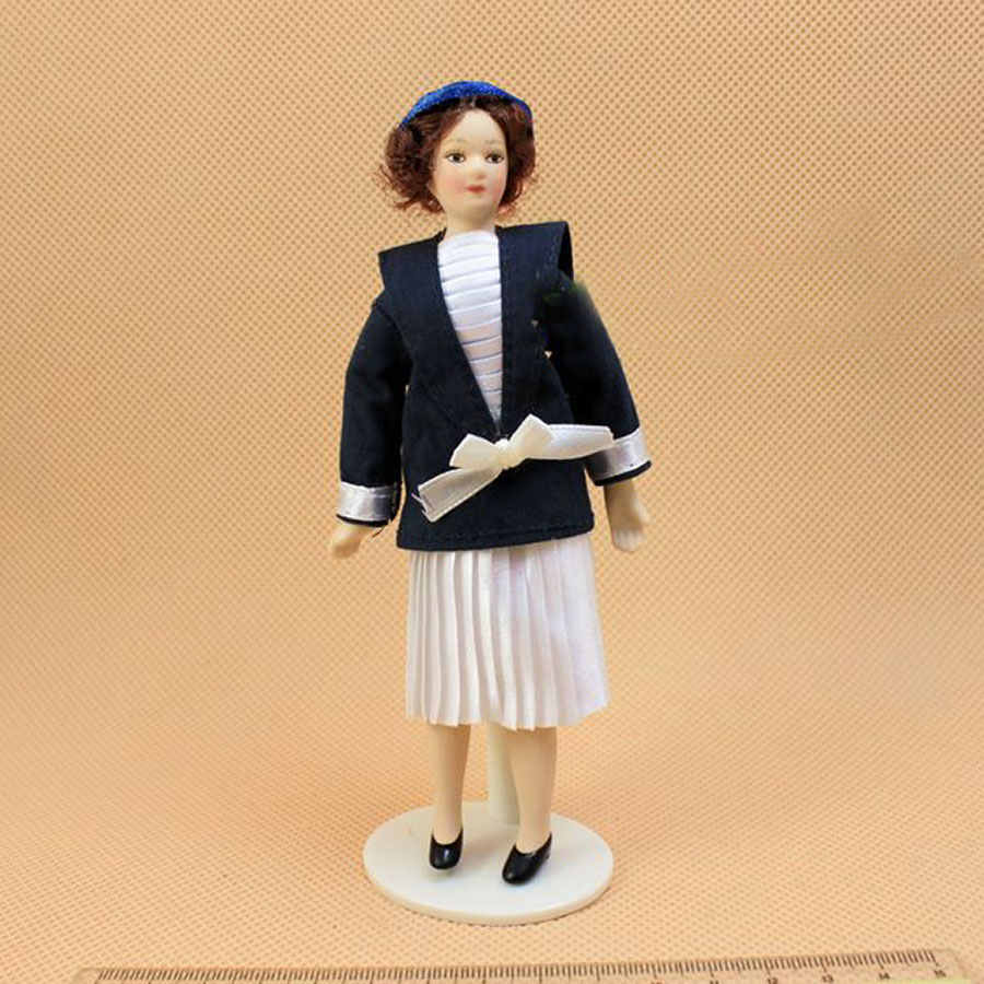Кукла Девушка в белом платье с черным пиджаком Миниатюра 1:12   - фото товара