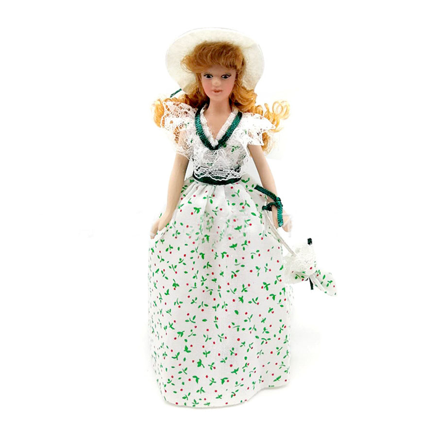 Кукла Девушка в летнем платье и шляпке Миниатюра 1:12   - фото товара