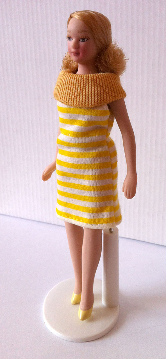 Кукла Девушка в полосатом платье Миниатюра 1:12