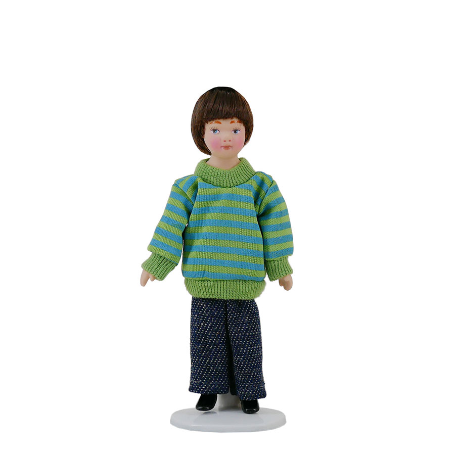 Кукла мальчик в полосатом пуловере 1:12 для румбоксов   - фото товара