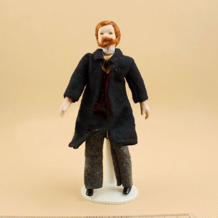 Кукла Мужчина в черном пальто Миниатюра 1:12