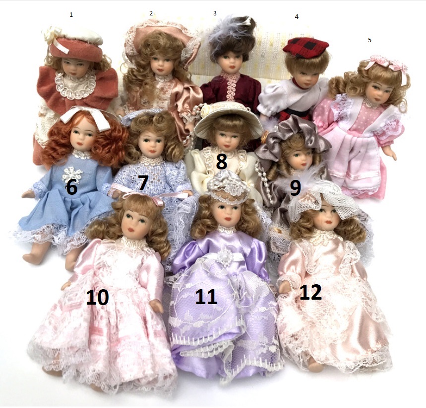 Миниатюрные интерьерные куколки-девочки в различных платьях для домиков и румбоксов в масштабе 1:12