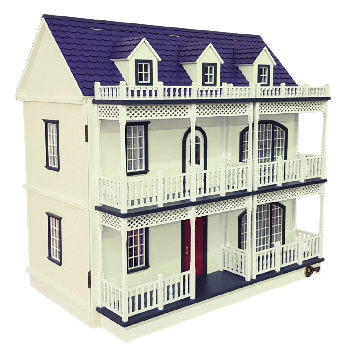 Элегантный и утонченный кукольный домик «Виктория» викторианского стиля выполнен в масштабе 1:12, имеет живописный фасад, который является визитной карточкой этого домика. По оформлению крыльца складывается впечатление не только о доме, но и о его хозяине. И чем аккуратнее и привлекательней оно выглядит, тем лучше. На двух этажах солидно смотрятся арочные французские окна с декоративными накладками, которые в