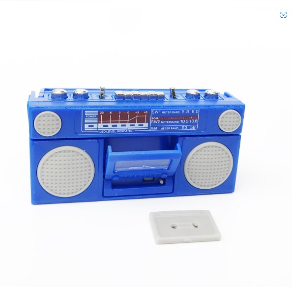 Миниатюрный однокассетный магнитофон создаст атмосферу в тематическом румбоксе или кукольном доме. Можно выбрать красный, синий, черный цвета.