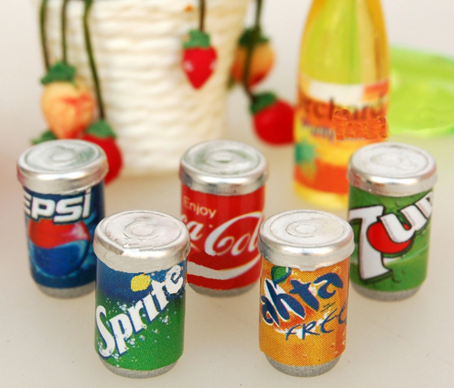 Металлические баночки с напитками для кукольной кухни 5 шт.