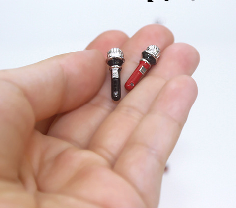 Микрофон для кукольного дома красного и черного цветов. Миниатюра для румбоксов масштабом 1: 12 (для кукол ростом около 12 см)