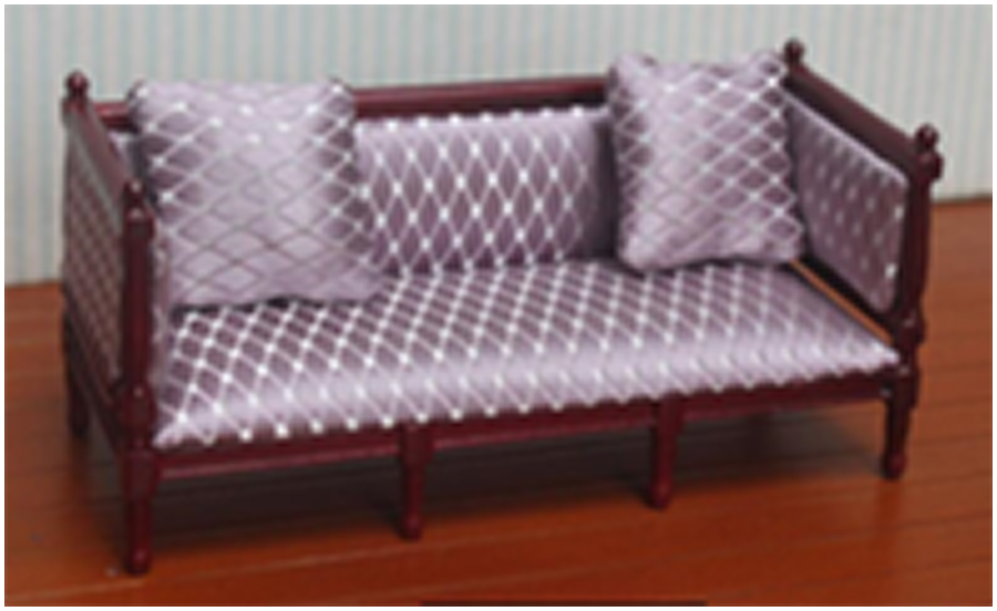 Элегантный диванчик  для кукольной гостиной с тканевой обивкой. Мягкая мебель для оформления румбокса или кукольного дома масштабом 1:12.
