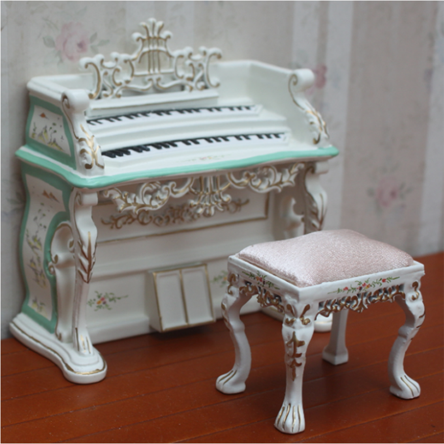 Миниатюра для кукол Клавесин со стульчиком Белый с росписью   - фото товара