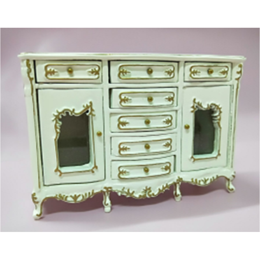 Миниатюра для кукол Комод с резьбой высокий Белый