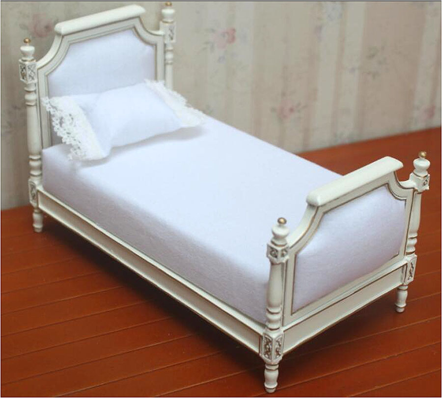 Кровать для кукол нарядного белого цвета масштабом 1:12