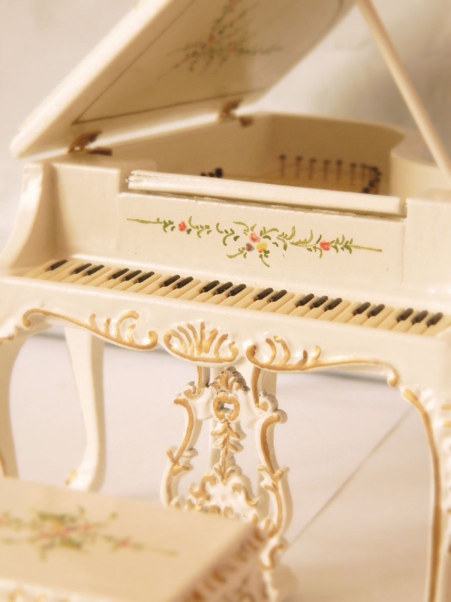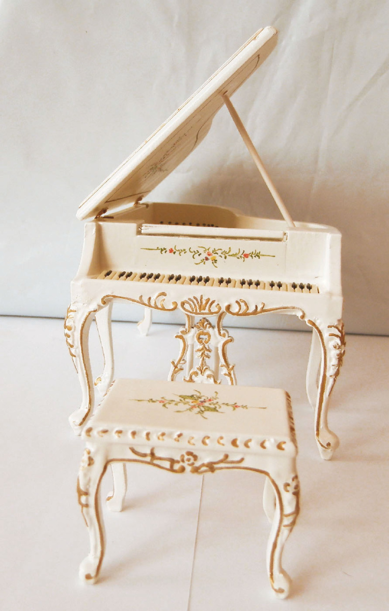 Миниатюра для кукол Рояль Роспись на белом 1:12