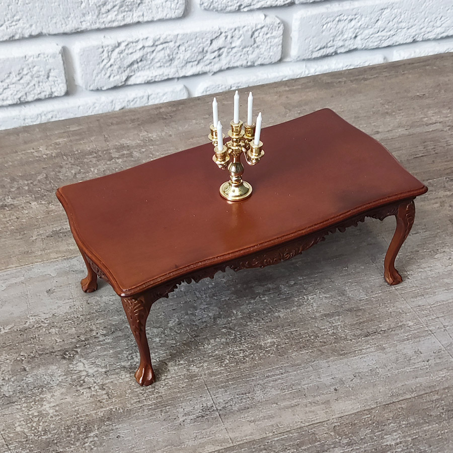 Большой прямоугольный стол для кукол на 4х ножках из натурального дерева с резьбой. Украсит кукольную гостиную, зал, зону отдыха в кабинете.